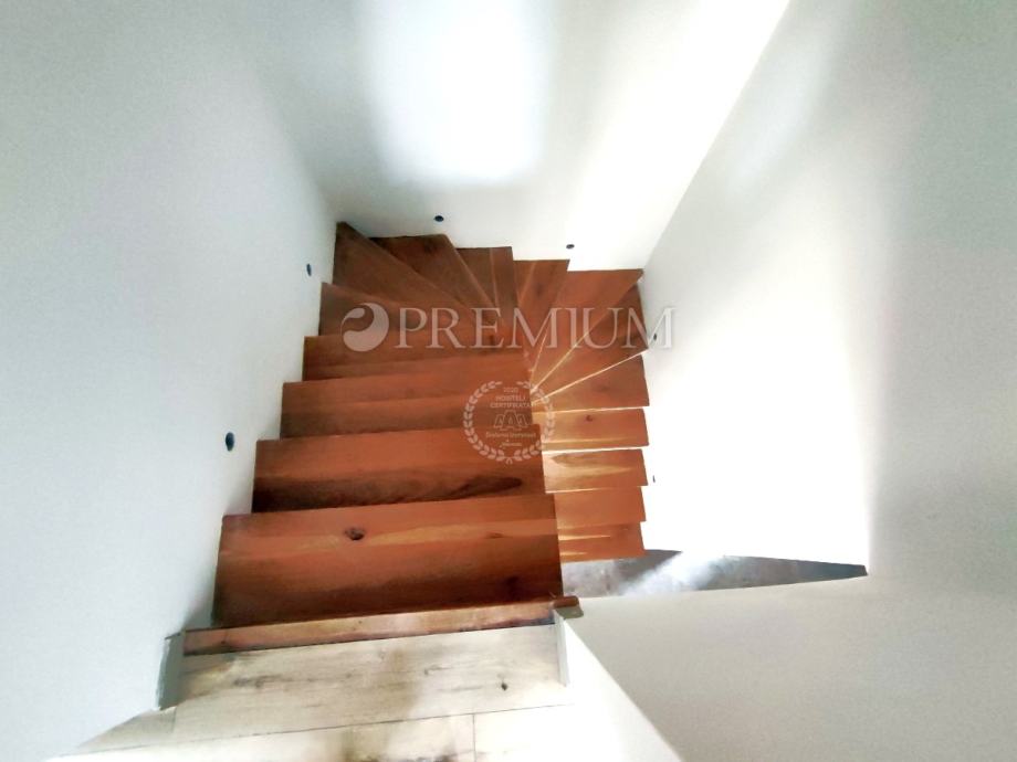 Unutrašnje stepenište vodi na kat, ukupne površine 48m2, na kojem se nalazi hodnik, kupaonica, te 3 spavaće sobe, od kojih glavna spavaća ima svoju kupaonicu.