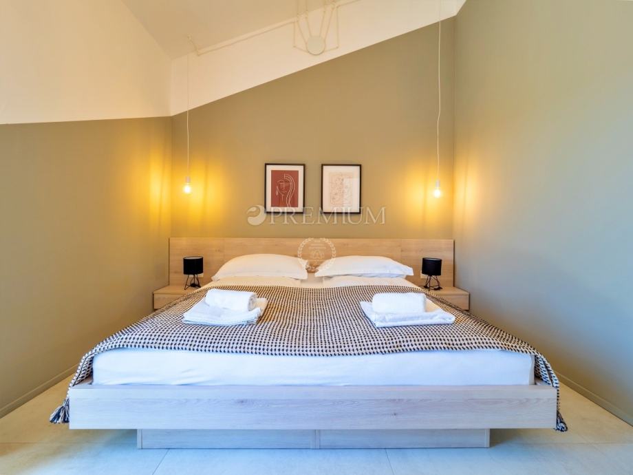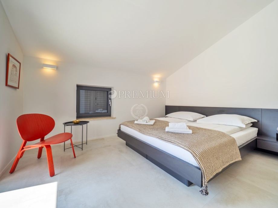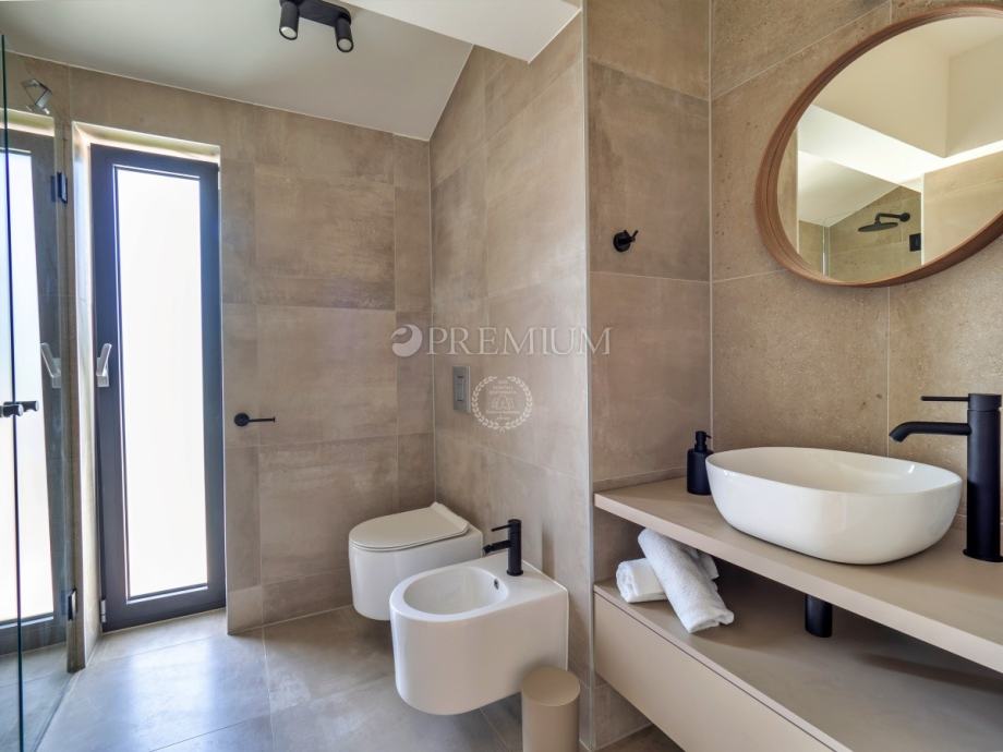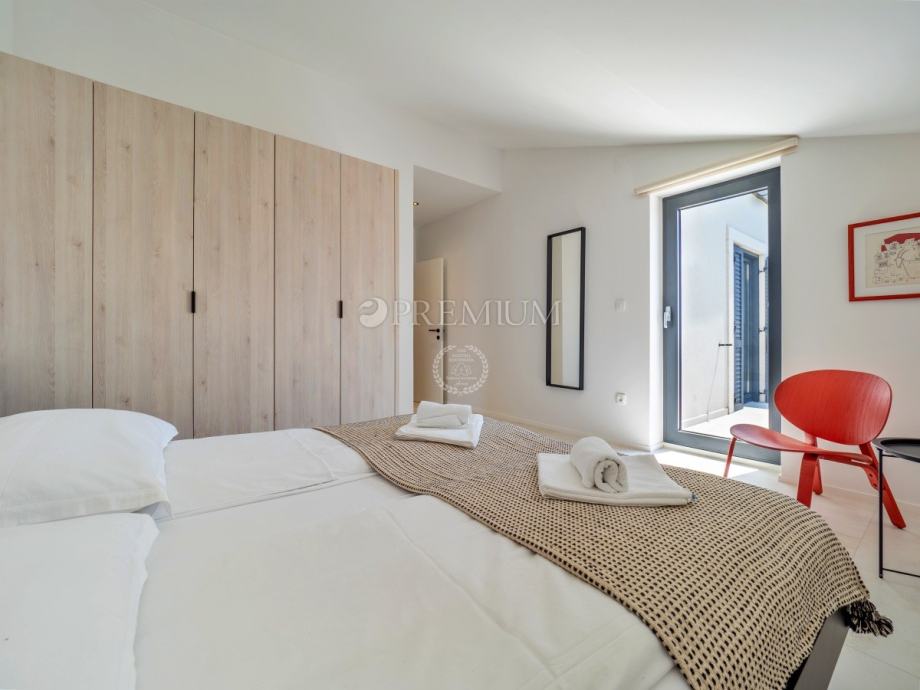 Unutarnjim stepeništem dolazi se na kat kuće, gdje se nalaze 3 spavaće sobe, svaka sa svojom kupaonicom, i izlazom na terasu (cca 4 m2) s koje se pruža pogled na more.