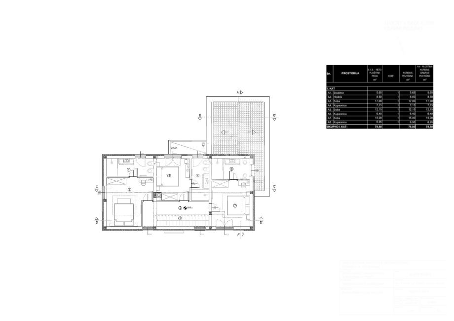 Na katu su smještene 3 spavaće sobe sa zasebnim kupatilom.
