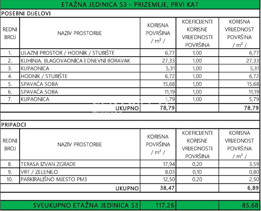 Stan S3 - prizemlje i 1. kat (dvoetažni) - 85,68 m2 = 481.950,00 €
