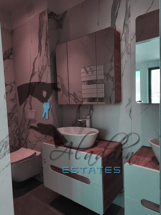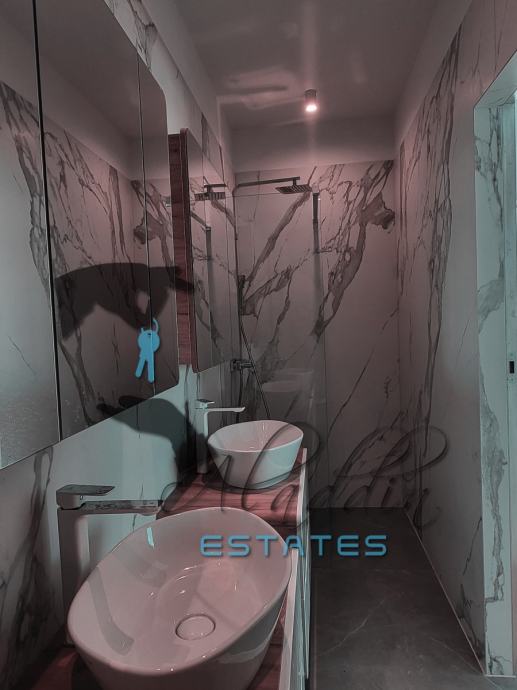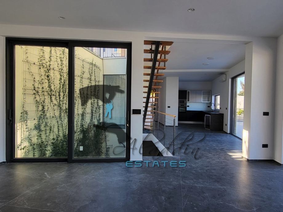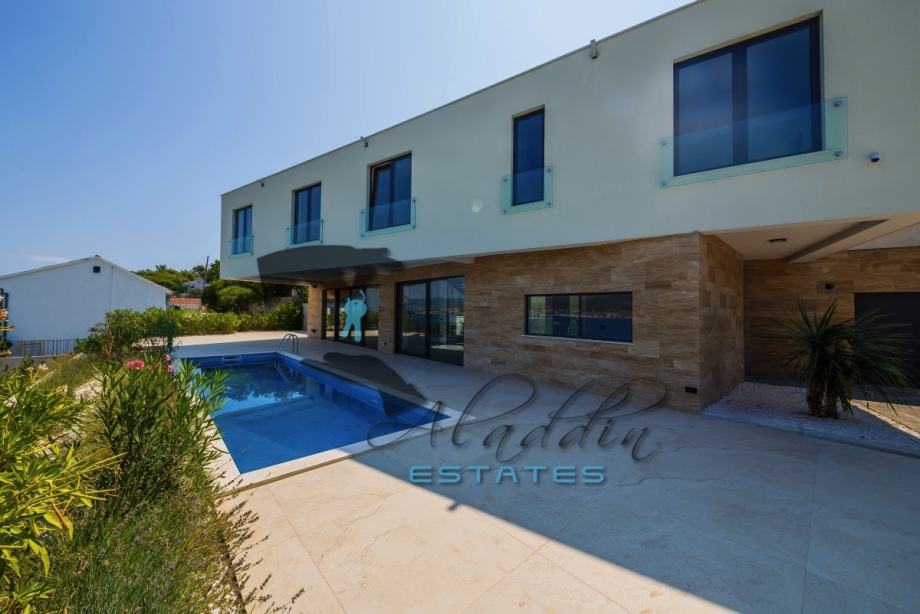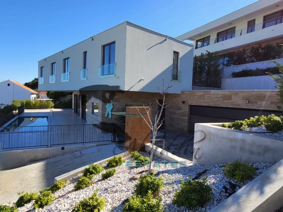 Super luxurious and modern villa on three floors in Okrug Donji, in the second row to the sea. New construction, with 326 m2 of living space, outdoor heated pool of 28 m2 and a landscaped garden of about 450 m2. The partially subterranean floor consists of a bathroom, laundry and a large room of 53 square meters, which is ideal for arranging as a fitness center, sauna or as desired. The ground floor houses a very spacious dining room, living room and kitchen sized a total of 76 square meters, a bathroom and pantry. There is also a large terrace with a modern swimming pool, as well as a garage for two vehicles. Upstairs are four bedrooms with three more bathrooms, as well as a lavish outdoor terrace.