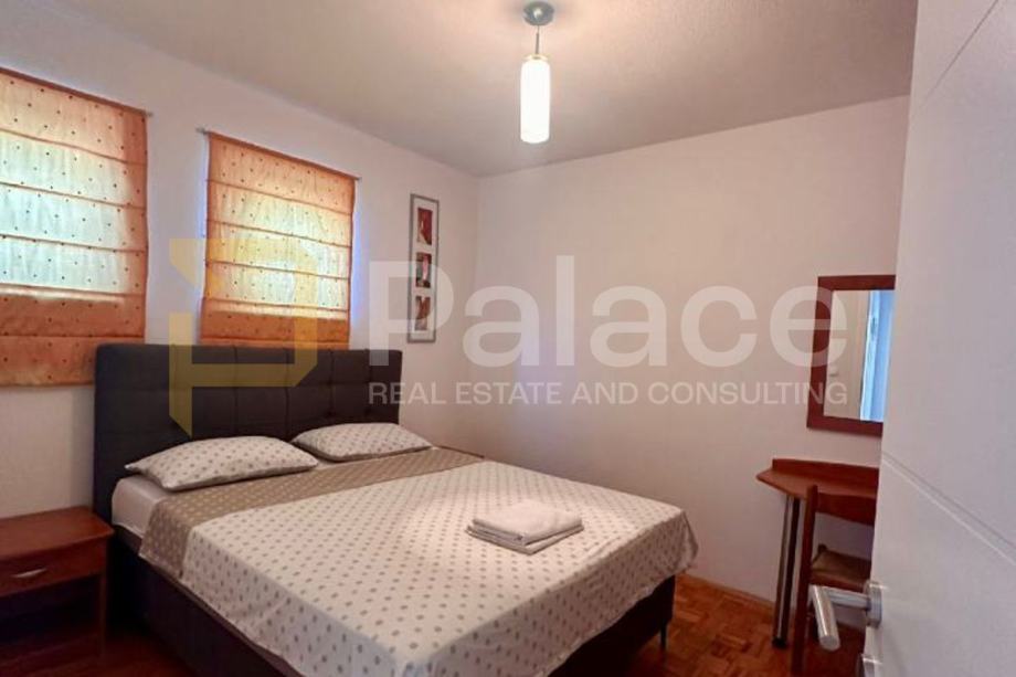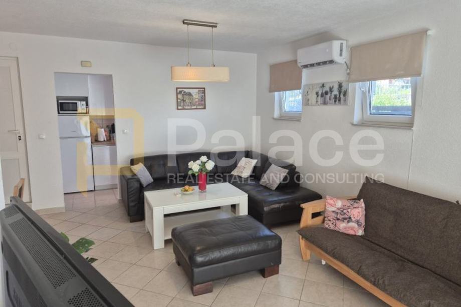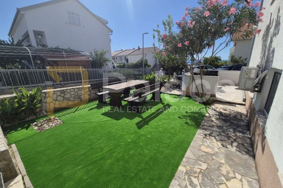Posredujemo u prodaji dvosobnog stana smještenog 260m zračne udaljenosti od mora, s pripadajućim vrtom od cca. 50m2 i parkirnim mjestom.