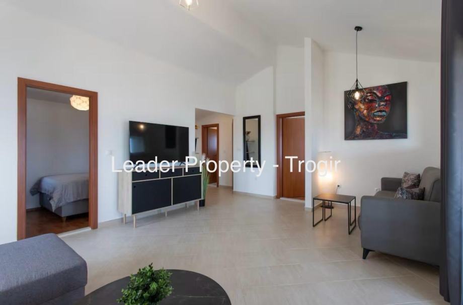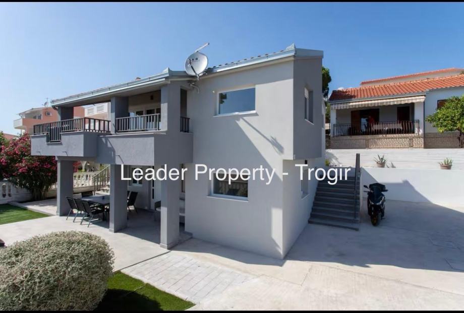 OKRUG GORNJI - na izvrsnoj lokaciji, u iznimno mirnom i tihom okruženju, uz neposrednu blizinu plaže i mora, posredujemo u prodaji manje kompletno uređene i namještene obiteljske kuće sa dvije odvojene stambene jedinice. Kuća je smještena na zemljištu od 384m2 te širokim pristupnim putem i parking prostorom za minimalno 4 automobila. Na zemljištu je sasvim dovoljno prostora za ugradnju bazena a blizina plaže i mora, čini ovu nekretninu idealnom za odmor i turistički najam.