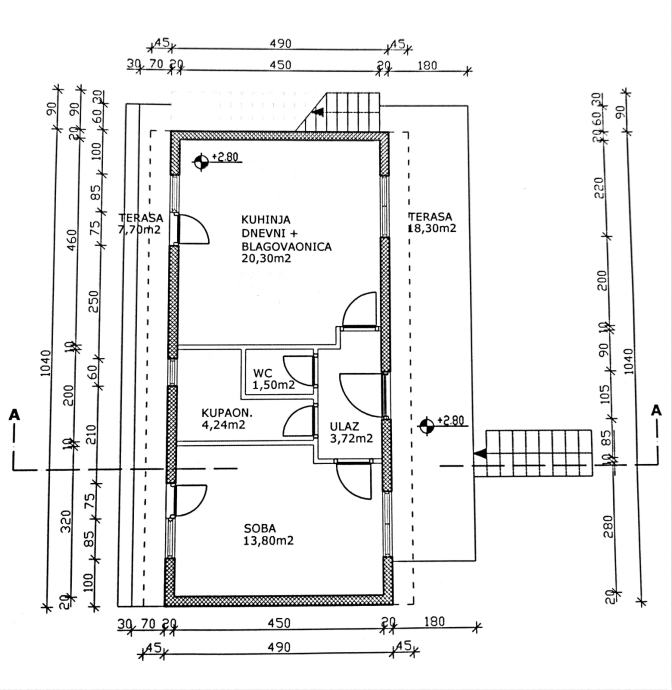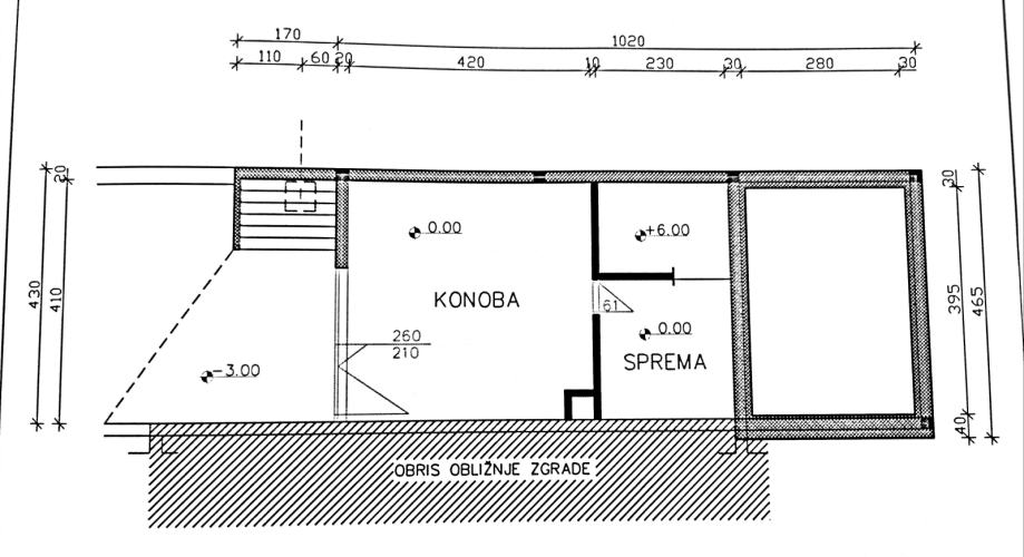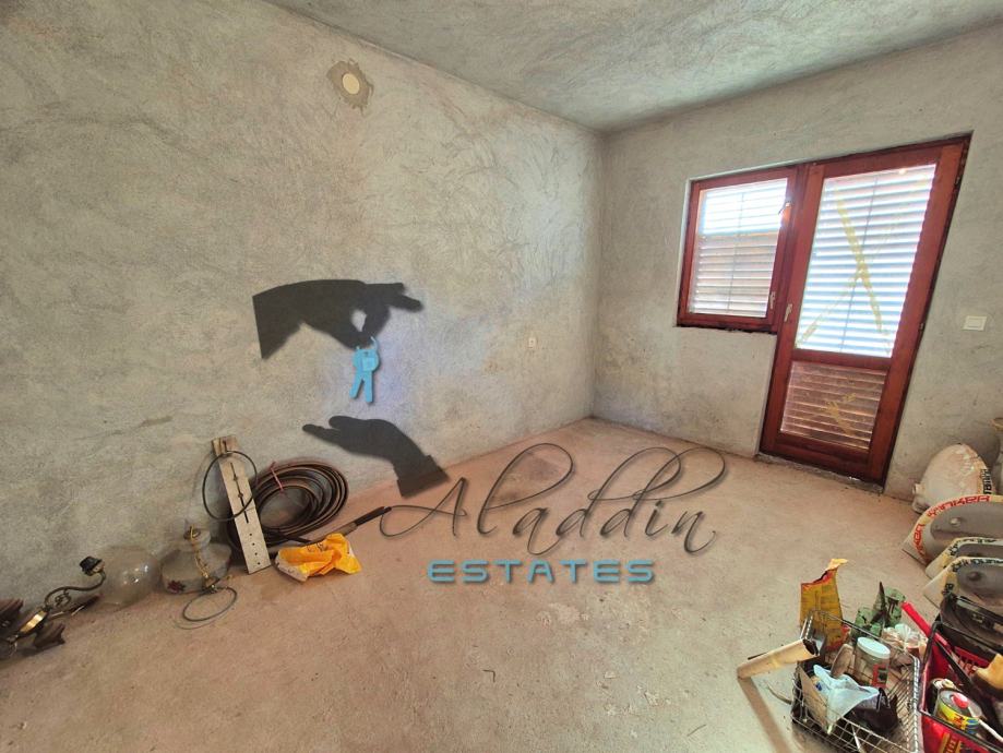 In a smaller family house, the ground floor and first floor each consist of one residential unit with one bedroom, bathroom and combined living room, dining room and kitchen. An additional tavern and outdoor storage room have been built on the ground floor, and an additional toilet on the first floor. The attic provides a further 51 m2 for development and use as desired. On the outside, the first floor is joined by two charming terraces, one with a terrific sea view, while the attic also offers a smaller terrace.