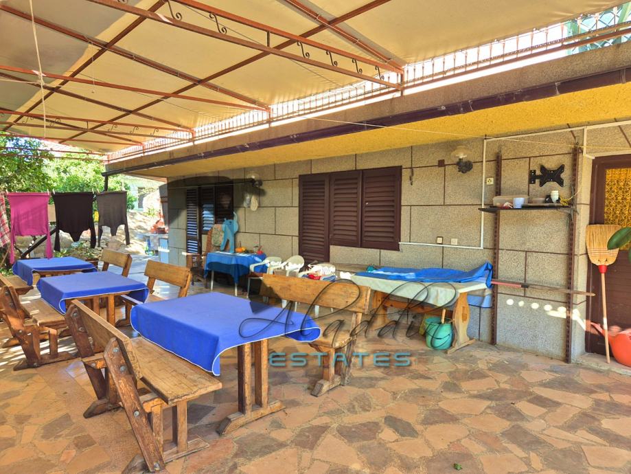 Both are of solid and high quality construction, while the larger one is well equipped and fully furnished. In its partially subterranean floor there are two comfortable bedrooms, one of which is arranged as a living room with kitchen (including a dishwasher), bathroom, boiler room, cellar and pantry, and a real and spacious cafe with a bar. On the outside there is a huge covered terrace with dining tables and a space for socializing.
