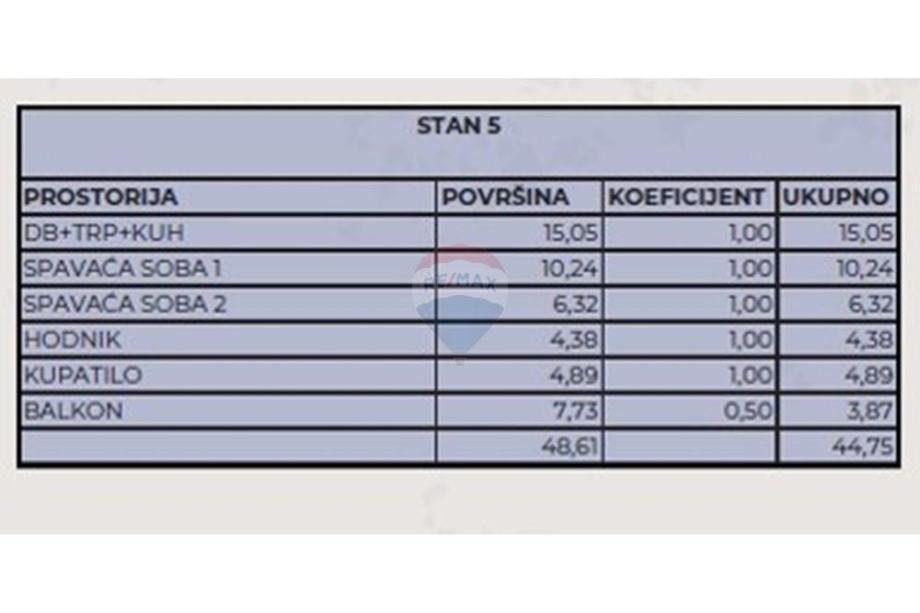 Stan uključuje dvije spavaće sobe, kupaonicu te hodnik. Tlocrt je pažljivo osmišljen kako bi omogućio funkcionalan raspored, jasno definirane zone te jednostavno i logično kretanje kroz prostor.