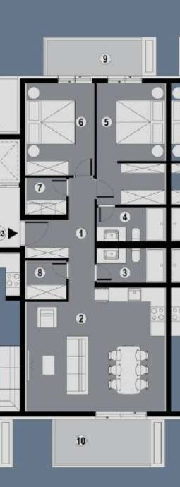 Okrug Gornji - južna strana otoka Čiova, moderna zgrada s garažom i liftom-useljivo odmah.STAN S 13 - položen na drugom katu zgrade.Sastoji se od hodnika, otvorenog koncepta kuhinje, blagovaonice i dnevnog boravka , dvije kupaonice, dvije spavaće sobe, praonice, ostave - ukupne zatvorene...