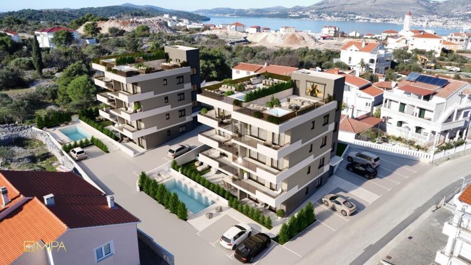 Prodaje se dvosoban stan na prvom katu novogradnje smještene u Okrugu Gornjem na otoku Čiovu, na odličnoj lokaciji s prekrasnim pogledom na Jadransko more. Stan će biti useljiv tijekom ljeta 2025. godine, a nalazi se u modernom kompleksu koji nudi brojne pogodnosti, uključujući zajednički bazen za opuštanje i rekreaciju.