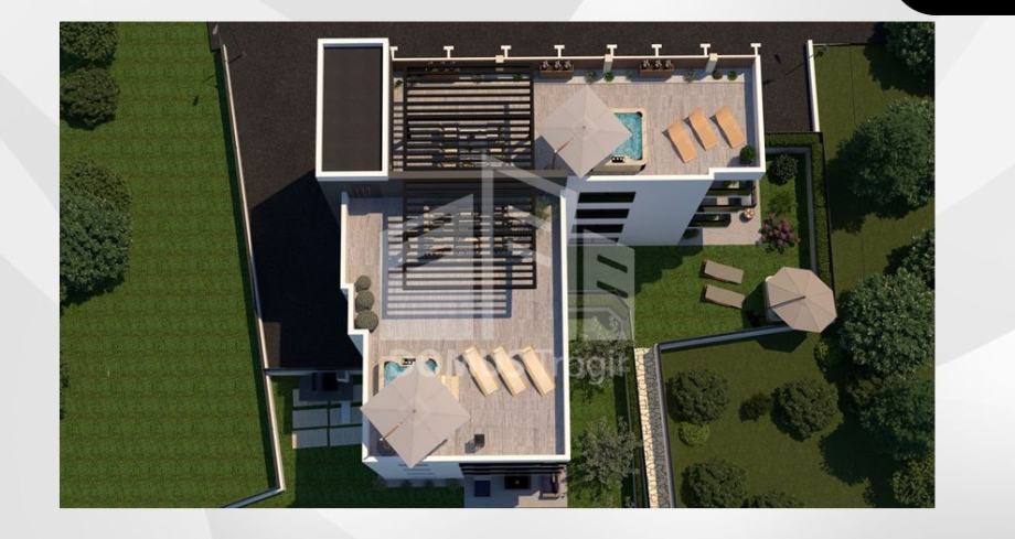 Pripada mu jedno vanjsko parkirno mjesto, te prohodna nenatkrivena krovna terasa površine 72,48 m2.