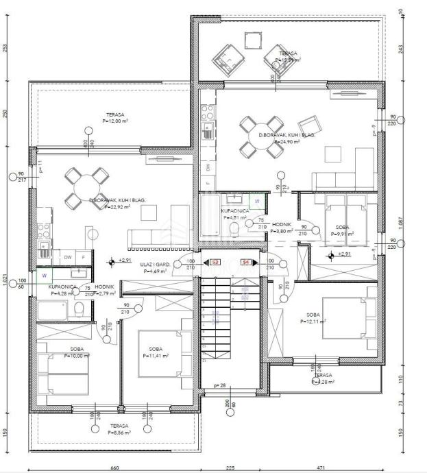 Kuhinja, blagovaonica i dnevni boravak: 22,92 m²