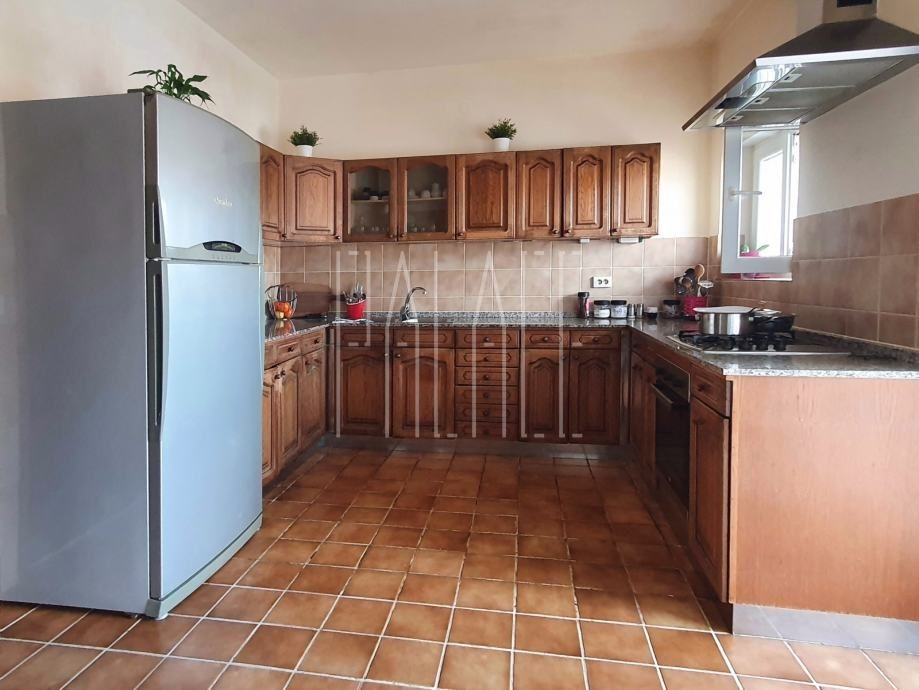 Oko kuće se nalazi veliki vrt (okućnica veličine 686 m2), 2 velike garaže (48.83 m2 i 54.55 m2), kotlovnica, i vanjski roštilj te 4 parkirna mjesta. Prizemlje se sastoji od kuhinje, dnevnog boravka, polunatkrivene terase, 2 balkona, kupaonice, spavaće sobe, predsoblja i prostranog dnevnog boravka (54 m2) koji je trenutno u završnoj fazi uredjivanja - postavljanju podova. Prizemlje je povezano s katom untarnjim drvenim stubištem.