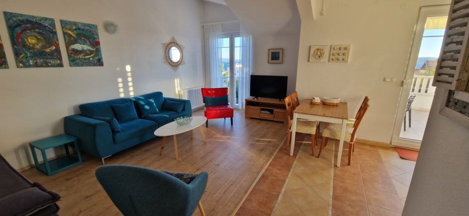 - stan "S2" (60,28 m²): kuhinja, blagovaonica, dnevni boravak, jedna soba, kupaonica, velika terasa s nenatkrivenim dijelom (7,73 m2) i natkrivenim dijelom (9,95 m²)