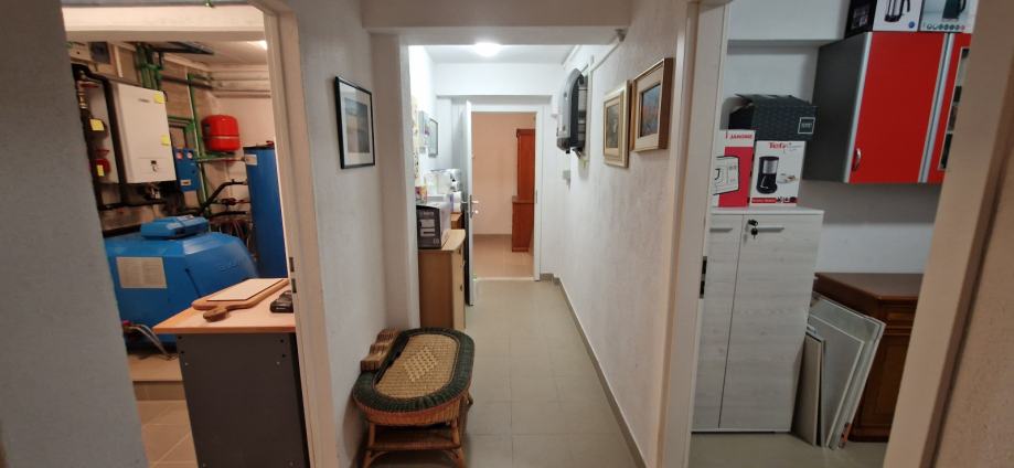 - dvije velike prostorije (45 m²), jedna opremljena za skladištenje, a druga kao strojarnica s vrhunskim instalacijama (solarna elektrana, centralno grijanje, sustav za kišnicu)