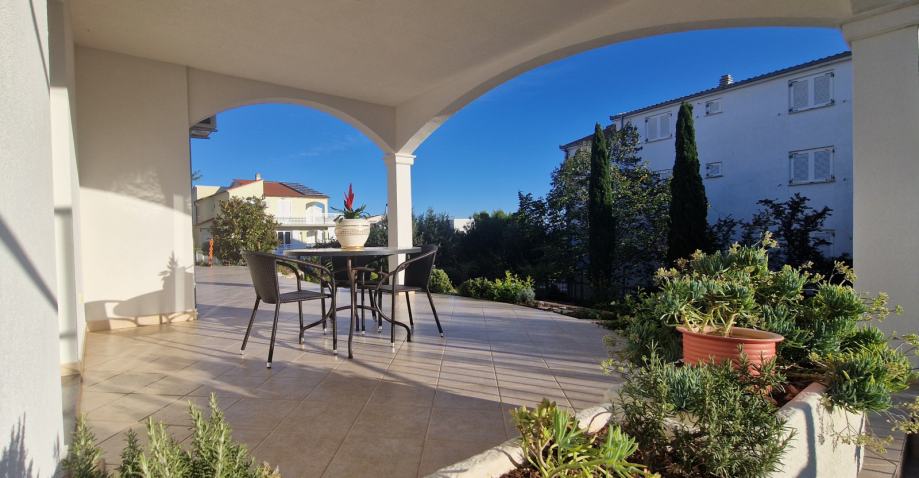- velika, južno orijentirana terasa u prizemlju s pogledom na dizajnerski uređen vrt u kojem prevladavaju palme i mediteransko bilje