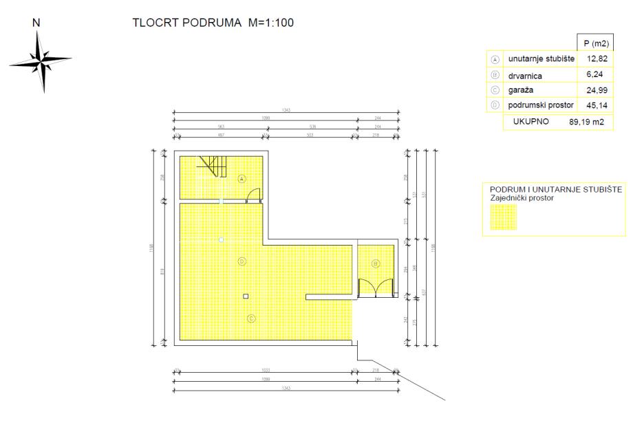 - predsoblje (3 m²) i unutarnje stubište (13 m²) elegantno povezuju razine vile