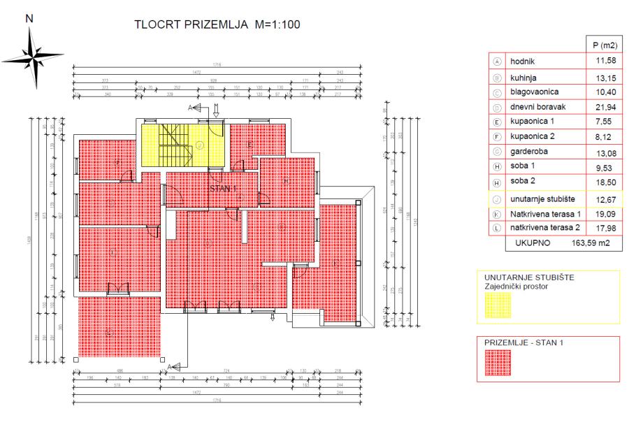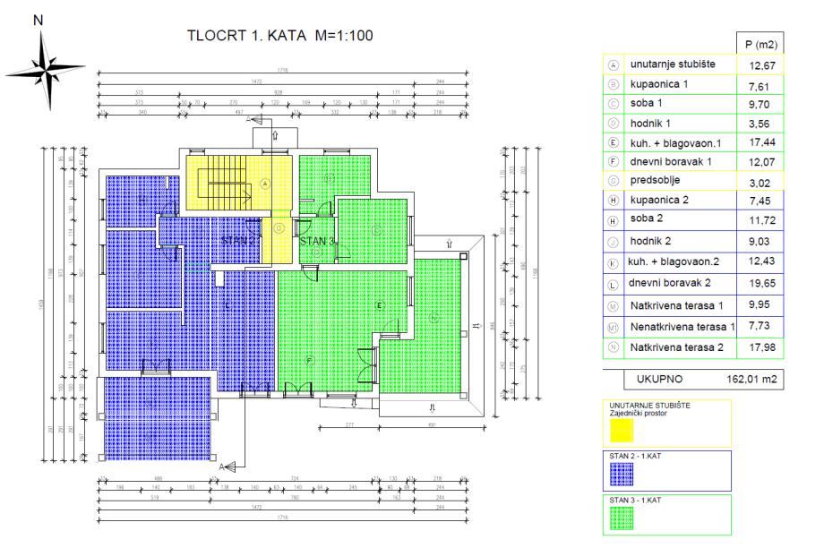 - stan "S1" (150,92 m²) s hodnikom, kuhinjom, blagovaonicom, dvije spavaće sobe, garderobom i dvije kupaonice