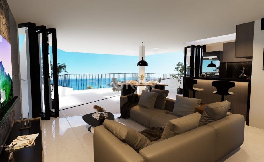 Poseban estetski i funkcionalni dojam ostavlja 6 metara široko stakleno pročelje, koje prostoru pruža obilje prirodnog svjetla i nesmetan pogled na Jadransko more.