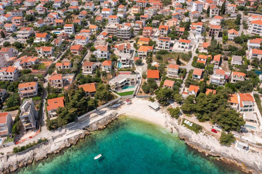 For sale we offer a luxurious modern villa with pool, located in the second row to the sea in an attractive location on the island of Čiovo. Only 30 meters from the pebble beach and crystal clear sea, this property offers the perfect combination of elegance, comfort and privacy.