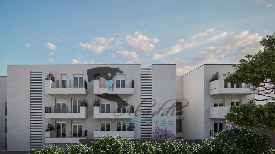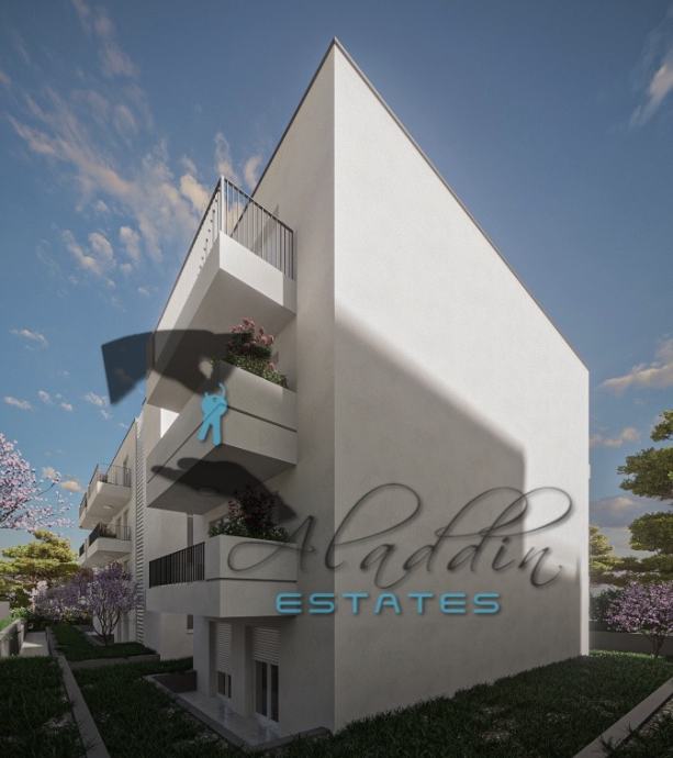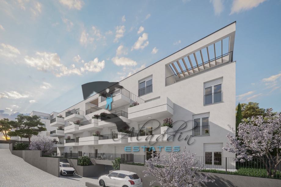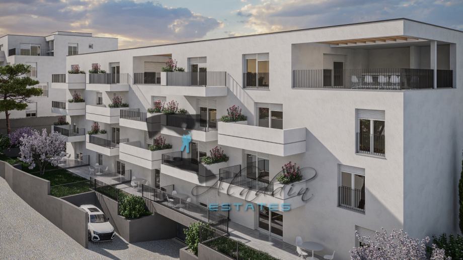 Extremely attractive residential building on four floors under construction in Okrug Gornji, on the island of Čiovo, with a total of 17 apartments. Available is apartment S2 in the partially subterranean floor, consisting of living room, dining room and kitchen as one room, entrance area, one bedroom, one bathroom and laundry/storage room. The apartment also includes two terraces, and it is possible to additionally purchase basement storage room and garage parking space. In short: