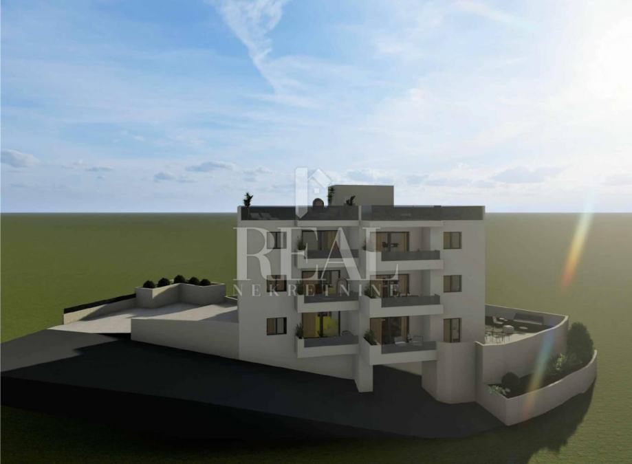 Otok Čiovo 200 m od mora stan ukupne površine 54,90 m2 koji se sastoji od dvije spavaće sobe , kuhinje s blagovaonicom i dnevnog boravka. Stanu pripada krovna terasa te jedno garažno parking mjesto. Nekretnina svega par min šetnje od uređenih plaža i u blizini svih bitnih sadržaja. Pet min vožnje od grada Trogira te 15 min do zračne luke. Početak gradnje planiran u deveti mjesec.