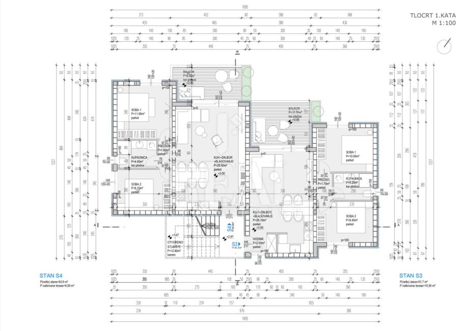 Novogradnja u okrugu Gornjem s pogledom prema Trogiru. Svega 200 m od mora i plaže smjestila se ova zgrada sa odličnim pristupom. U ponudi imamo stan S4 na prvome katu koji se sastoji od dvije spavaće sobe , dnevnog boravka i kuhinje s blagovaonicom te terase s koje se pruža pogled na more. U blizini svih potrebnih sadržaja poput trgovine , restorana , dječjeg vrtića ... Stanu pripada jedno garažno parking mjesto i ostava u podrumu cca 10 m2. Useljenje je planirano kroz deveti mjesec.