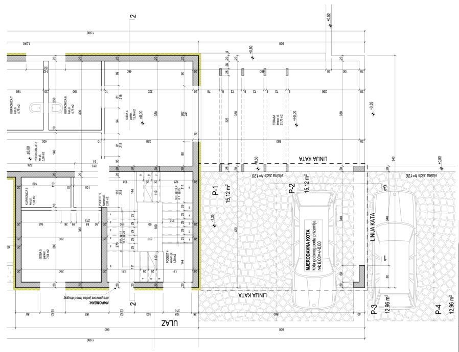 The villa is located super close to the beach in the second row to the sea, with a beautiful panoramic view of the sea and the coast. It includes four parking spaces, lies along the road with all the infrastructure and additional facilities nearby.