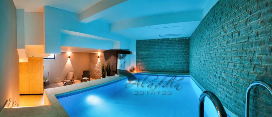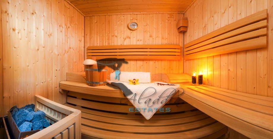 U sklopu nekretnine se nalazi raskošan bazen s ležaljkama i suncobranima, roštilj, vrlo uređen vrt s vrtnim stolom i stolicama te vanjski tuš. Posjeduje brojne zidne i podne klima uređaje, podno grijanje u kupaonicama, solarne kolektore, moderan sustav video nadzora i alarma te je cjelokupno koncipirana na bazi smart-home modela.