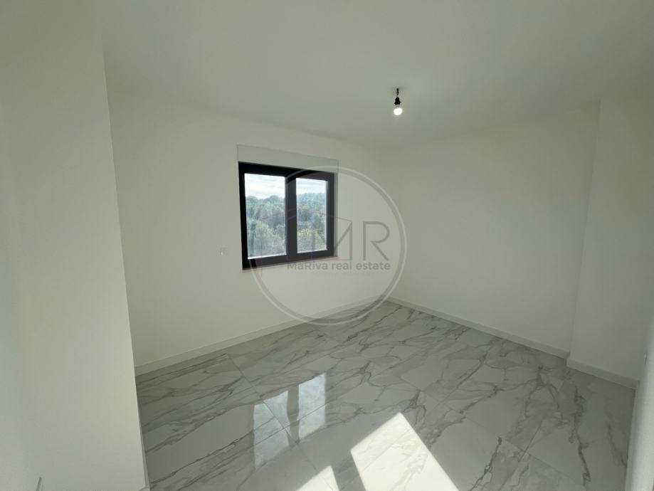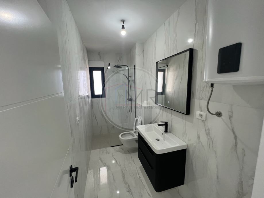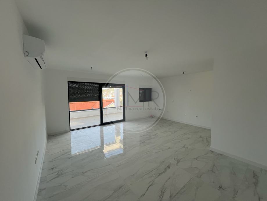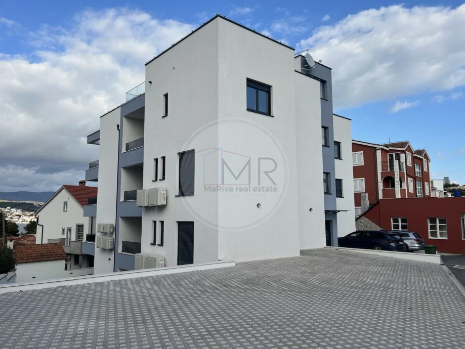 Ovaj novi penthouse smješten je na drugom katu moderne zgrade iz 2024. godine, u mirnom okruženju nedaleko centra mjesta i samo 200 metara od mora. Površina stana iznosi 93,50 m², a dodatnu vrijednost pružaju prostrana terasa od 23,93 m², lođa od 11,41 m² te impresivna krovna terasa od 93,58 m² s predivnim pogledom na more.