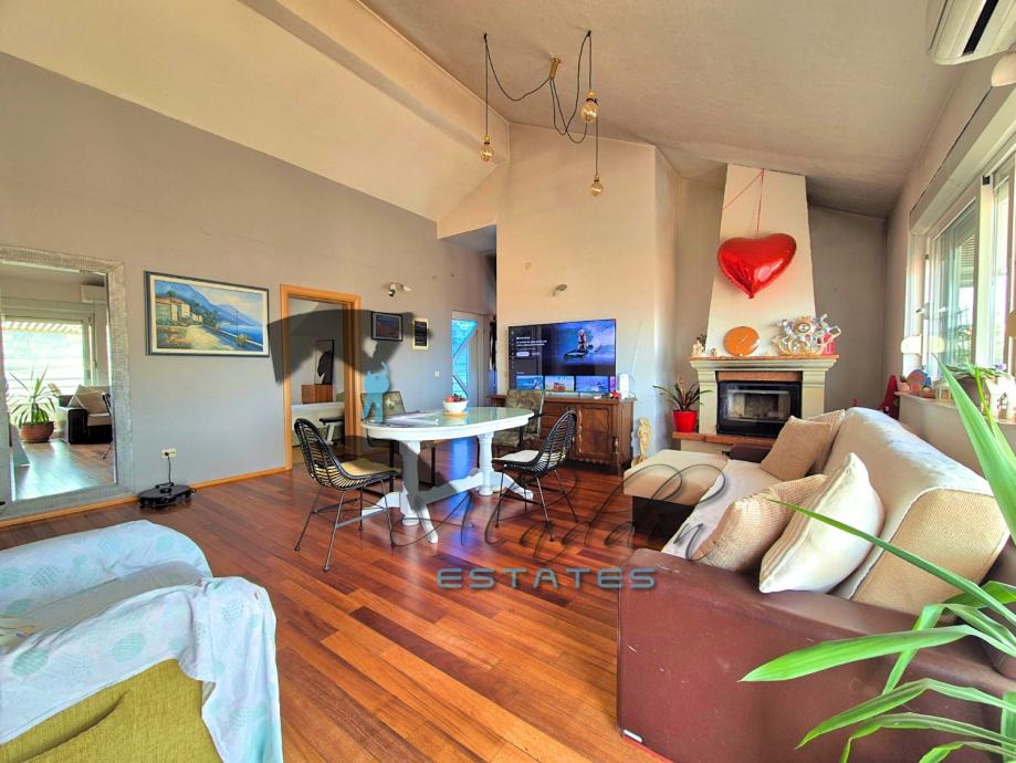 Stan je vrlo dobro opremljen, tu su dva klima uređaja, čak dva kamina sa zasebnim dimnjacima, zemaljska televizija, perilica posuđa, velika balkonska tenda, roštilj, kvalitetna vanjska PVC stolarija s dvoslojnim izo-staklima i roletama na svim prozorima, parketi u dvije spavaće sobe i dnevnom boravku, keramičke pločice odnosno laminati u ostalim prostorijama.