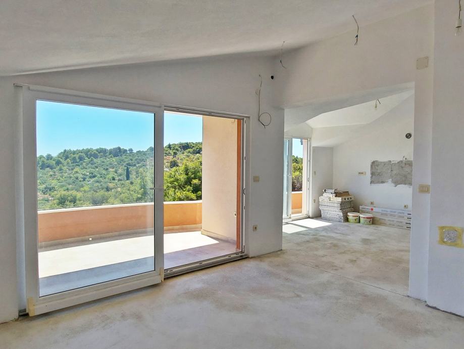 Drugi kat sastoji se od velikog dnevnog boravka, velike lođe, kuhinje, blagovaonice, četiri sobe, jednog uređenog kupatila (za preostala dva kupatila potrebno postaviti pločice). Sve sobe imaju izlaz na balkone.