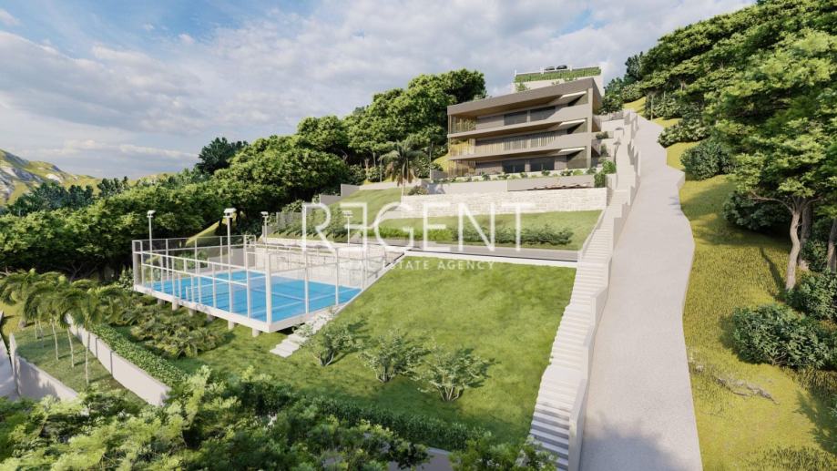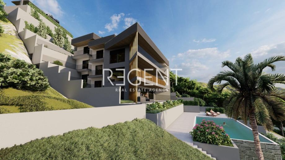 Ukupna površina zemljišta je 2460m2, a izrađen je i idejni projekt za izgradnju luksuzne vile. Projektirana vila je kaskadne gradnje, sadrži terasu, prostor za outdoor living, vrt, bazen i igralište. Ovaj projekt zbog svoje lokacije ima nevjerojatan potencijal u turizmu i brz povrat investicije, a istovremeno je savršena prilika za one koji traže luksuzan dom.