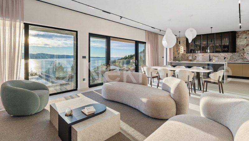 Na prodaju je ekskluzivna dizajnerska vila smještena u mirnom predjelu nedaleko od Omiša, s očaravajućim pogledom na more. Objekt je suvremenog dizajna, potpuno opremljen i namješten vrhunskim talijanskim namještajem, te kao takav odmah spreman za useljenje.