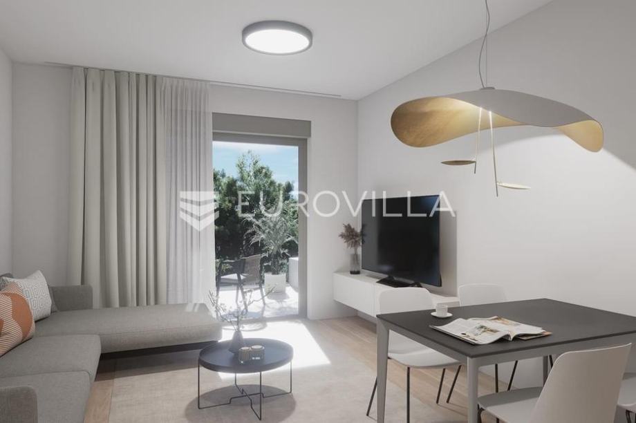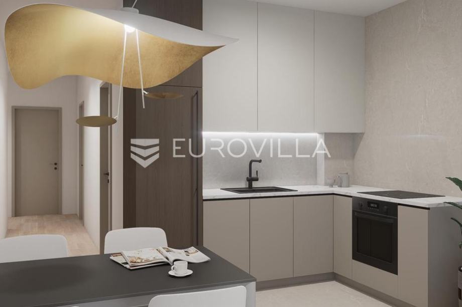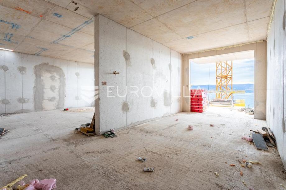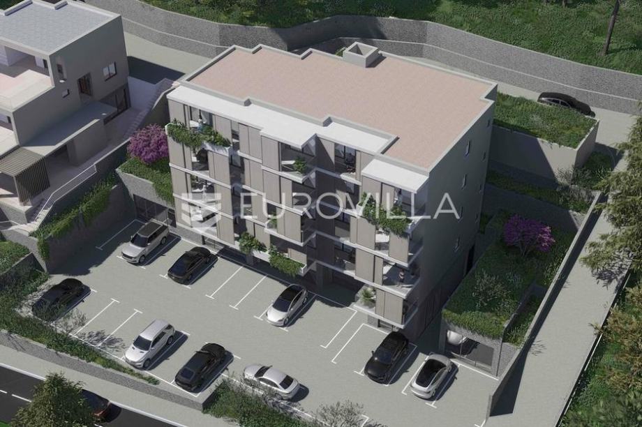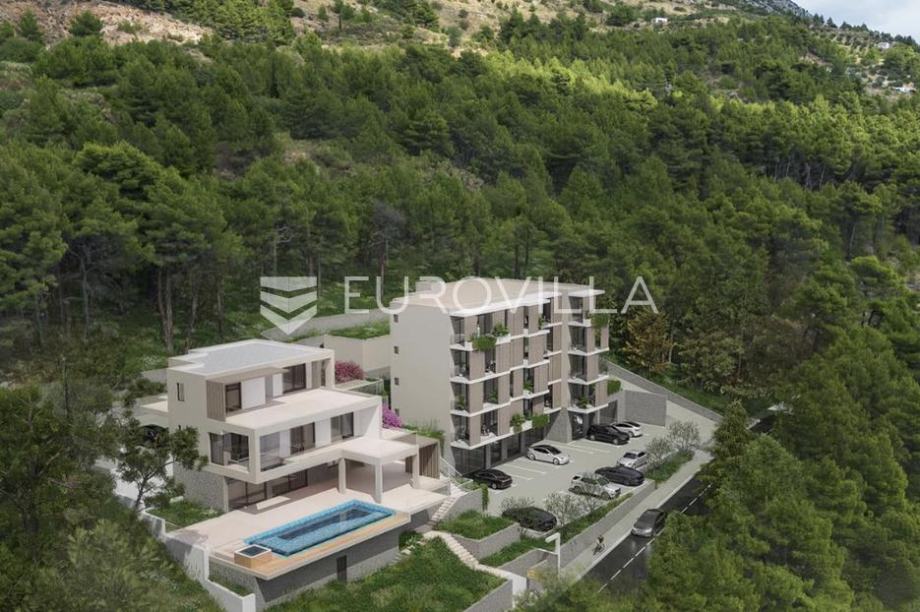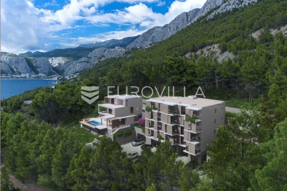 Omiš, dvosoban stan u modernoj stambeno-poslovnoj zgradi s predivnim pogledom na more i grad Omiš.STAN S11 nalazi se na četvrtom katu zgrade i ima ukupno 57,75 m2 zatvorene površine. Sastoji se od ulaznog prostora, dvije spavaće sobe, hodnika, kupaonice, dodatnog WC-a, dnevnog boravka i kuhinje s blagovaonicom. Iz dnevnog boravka i obje sobe izlazi se na natkrivenu terasu površine 10,65 m2 s južnom orijentacijom koja osigurava mnoštvo dnevnog svjetla i prekrasan panoramski pogled na more.Stan se nalazi na zadnjem katu koji pruža i najbolji pogled. Sve etaže zgrade povezane su liftom što omogućuje lak pristup stanovima.Uz stan moguća je kupnja privatne garaže ukupne površine 16,56 m2 po cijeni od 22 000, 00 EUR-a, te vanjskog parkrinog mjesta površine 12,50 m2 po cijeni od 17 000, 00 EUR-a.Oprema: podno grijanje u kupaonicama, klimatizirana svaka prostorija, ALU stolarija, protuprovalna ulazna vrata, vrhunski parket, keramika i sanitarna oprema...Zgrada se nalazi na mirnoj lokaciji, tek dvije minute vožnje od centra grada Omiša, a okružena je zelenilom i nudi predivan pogled na more. Najbliža plaža je udaljena samo 200 metara zračne linije.Useljenje je predviđeno u prvoj polovici 2027. godine.Za sve ostale informacije stojimo Vam na raspolaganju....