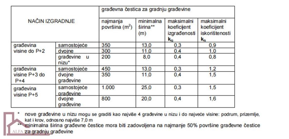 Prema prostornom planu grada Omiša, zemljište se nalazi u izgrađenom, uređenom dijelu građevinske zone – mješovita namjena (pretežito stambena). Moguća je izgradnja samostojećih kuća, dvojnih i građevina u nizu do maksimalne visine P+5 katova.