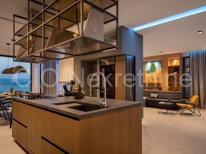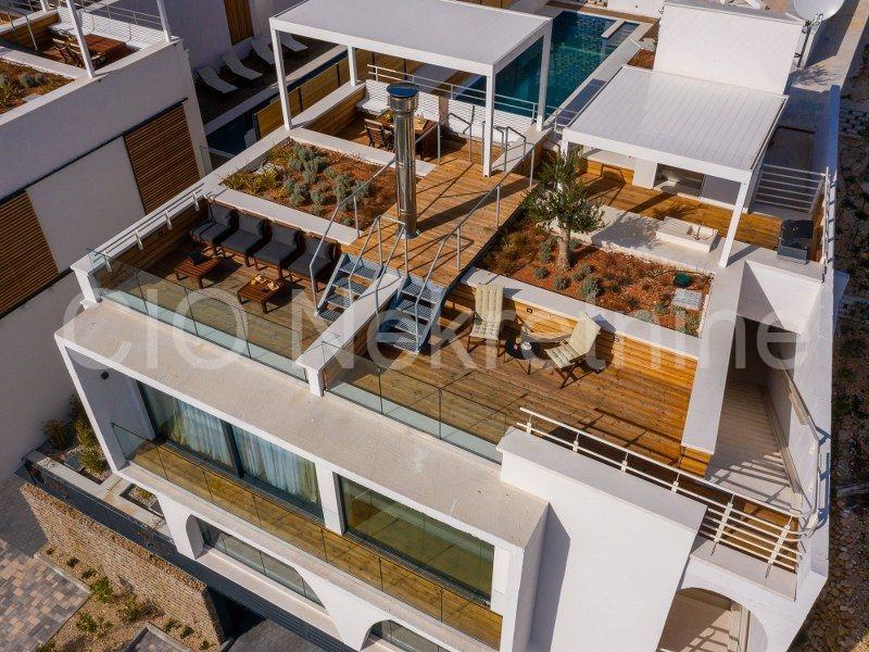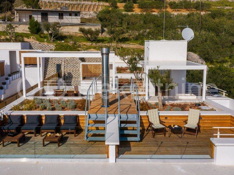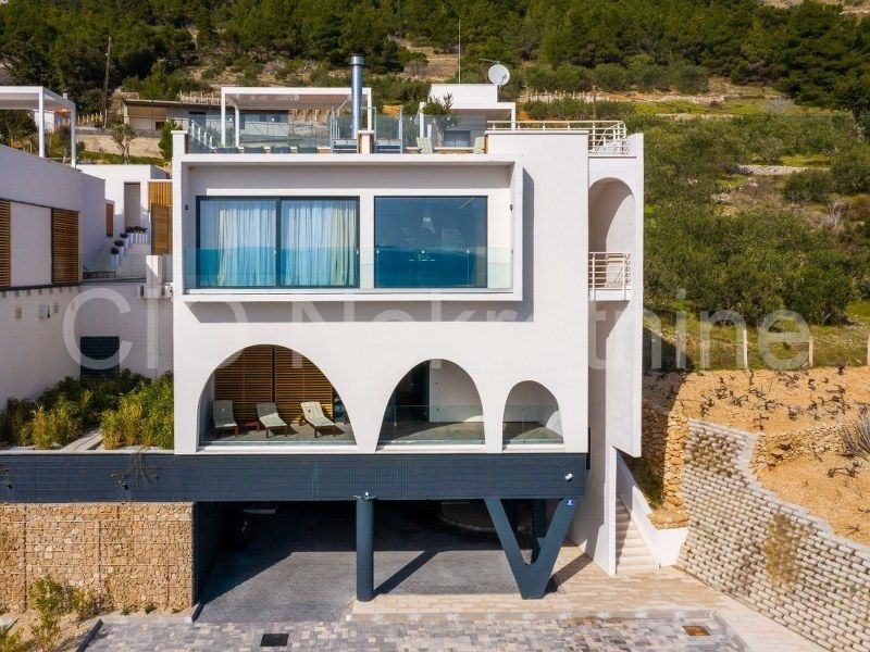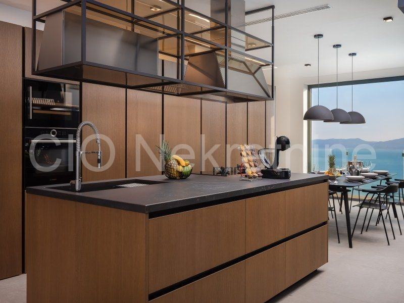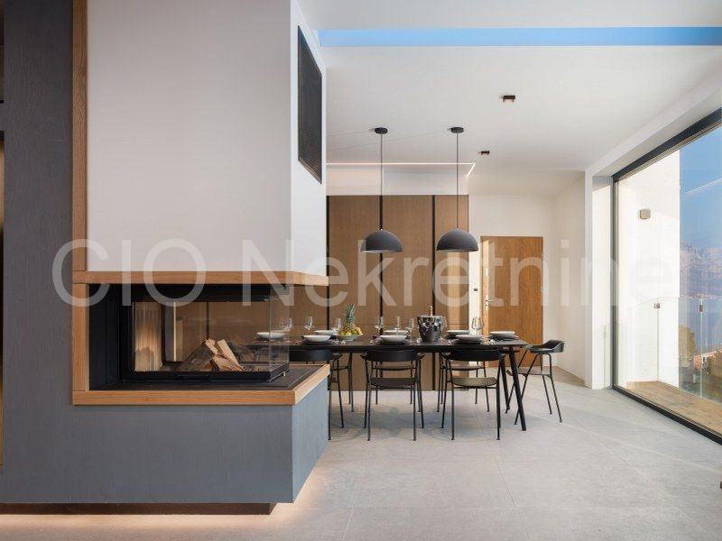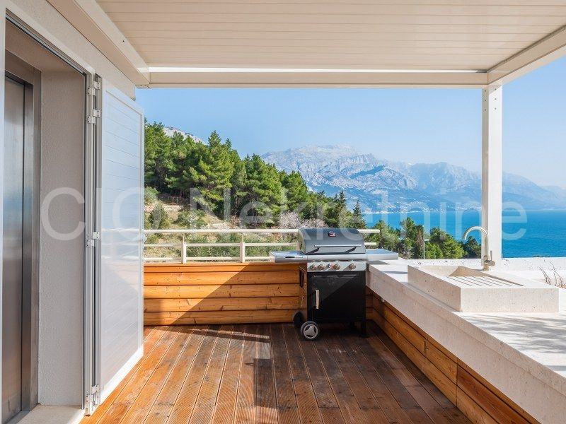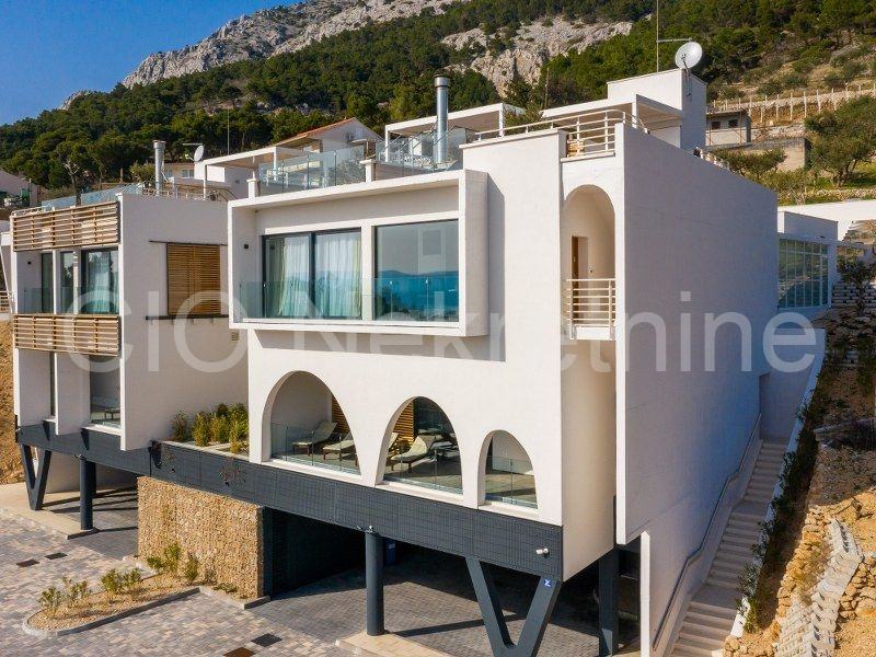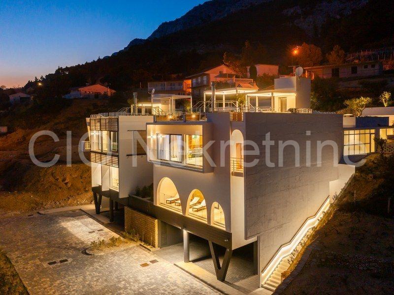 Posredujemo u prodaji luksuzne vila s panoramskim pogledom i bazenom koja je smještena na parceli površine 2253 m2 nedaleko grada Omiša. Vila se proteže na tri etaže i ima ukupnu neto korisnu površinu od 297 m2.U prizemlju vile nalazi se natkriveni parking s tri parkirna mjesta i punionica za električne automobile. Ispred vile nalazi se dodatno 4 nenatkrivena parkirna mjesta. Unutar vile nalazi se toplinski labirint za energetski učinkovitu potrošnju energije i glavna strojarnica.Prvi kat vile obuhvaća wellness prostor koji uključuje ekskluzivni doživljajni tuš, hamam i saunu, hidromasažni jacuzzi za 6 osoba, sobu za opuštanje i teretanu.Na drugom katu nalazi se prostrani dnevni boravak s potpuno opremljenom kuhinjom. Dnevni boravak ima izlaz na terasu bazena, a na ovoj etaži se također nalaze tri spavaće sobe, svaka s vlastitom en-suite kupaonicom.Svaka vila ima veliki grijani bazen sa sunčalištem, dok se na sjevernom kraju bazena nalazi hidromasažna klupa za tri osobe.Krovna terasa vile pruža spektakularan i neometan pogled na otoke Brač, Hvar i Korčulu te cijelu Makarsku rivijeru. Na krovnoj terasi, koja se prostire na 93 m2, nalazi se ljetna kuhinja s plinskim roštiljem, kamenim sudoperom, mini hladnjakom, ledomatom, stolom za blagovanje za osam osoba, dvije bioklimatske pergole i dodatni prostor za druženje i sunčanje.Komunikacija od prizemlja do krova odvija se liftom ili stepenicama. Vila je posebna po zelenom krovu soba i dnevnog boravka, na kojima se nalaze stabla masline okružena mediteranskim biljem. Zeleni krovovi ne samo da su estetski detalj, već služe i kao toplinska izolacija, pružajući energetsku uštedu.Pristup dizalima, punjačima za električne automobile i prostorijama osiguran je putem kodiranih kartica. Podno grijanje postavljeno je u wellnessu, dnevnom boravku, kuhinji i en-suite kupaonicama.Parking je osiguran ispred vile, vlasništvo je uredno.Udaljenost od Zračne luke Split 55,7 km, Trajektna luka Split udaljenost 39,1 km Omiš 14,1 km Makarska, udaljenost 25,3 km.Više informacija kao i razgledavanje nekretnine s agentom moguće je isključivo uz potpisani Ugovor o posredovanju koji je u skladu sa Zakonom o zaštiti podataka i Zakonom o posredovanju u prometu nekretnina.Agencijska provizija iznosi 3% + PDV.