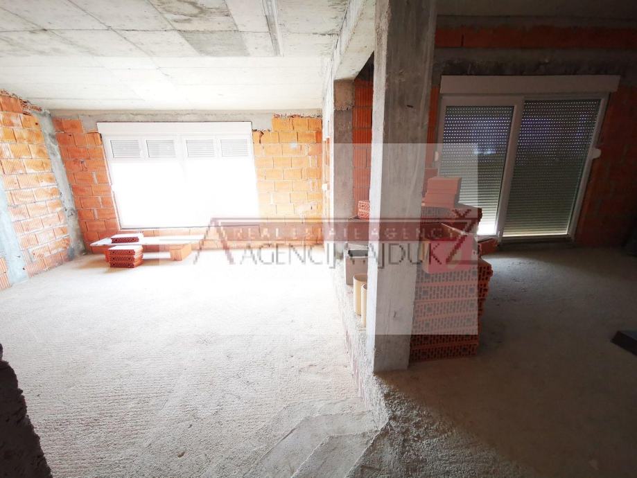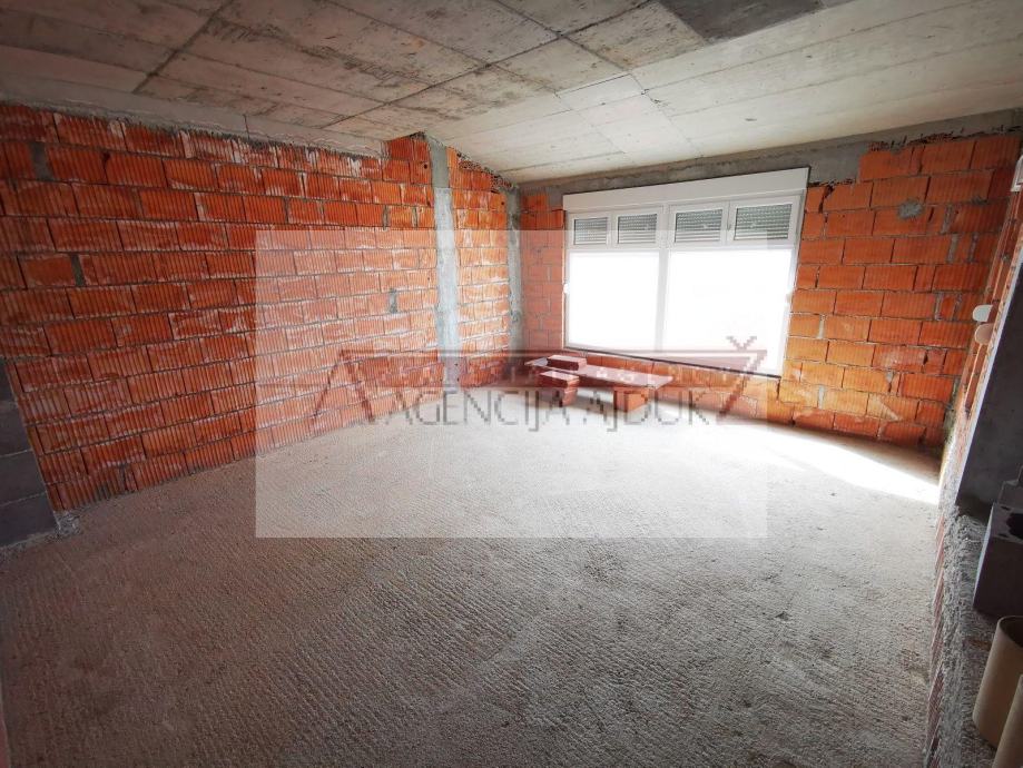 Na prvom katu se nalazi studio apartman južne orijentacije, ostava, hodnik te veliki apartman (spavaćae soba sa sjevernim balkonima, a dnevni boravak sa južnim balkonom.) Prvi kat je kompletno uređen i završen.