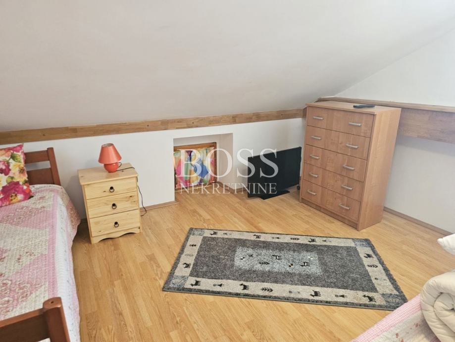 Omišalj, nekretnina vrijedna pažnje! Apartman 2S+DB, 82m2. Ulazna terasa, u prizemlju su kuhinja, dnevni boravak, stepenište za kat gdje se nalazi spavaća soba koja je povezana još jednim drvenim stepeništem koje vodi u visoko potkrovlje, normalne visine gdje se nalazi druga spavaća soba. Nekretnina se prodaje kompletno namještena i idealna je kao investicija za turizam, ali i za svakodnevni život. Apartmanu pripada parkirno mjesto i roštilj. Rijetkost na tržištu! Boss, kontakt: 091/534-2214 Mirko