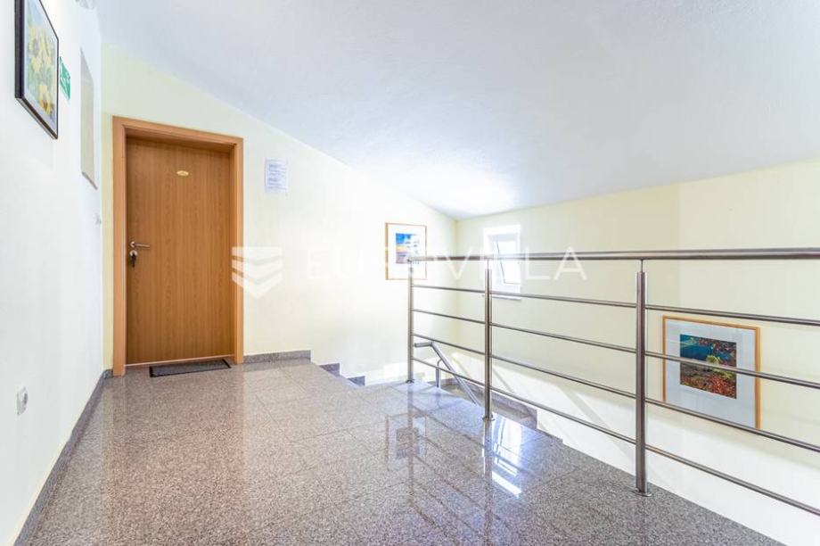 Prodaje se apartmanska kuća s 8 apartmana na 3 etaže, s dvorištem te velikom garažom, kompletno uređena, opremljena i namještena. Do sada je bila u funkciji turističkog najma. Kuća je smještena na izvrsnoj lokaciji, na povišenom terenu, udaljena od mora 250 metara zračne linije. Nalazi...