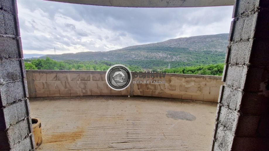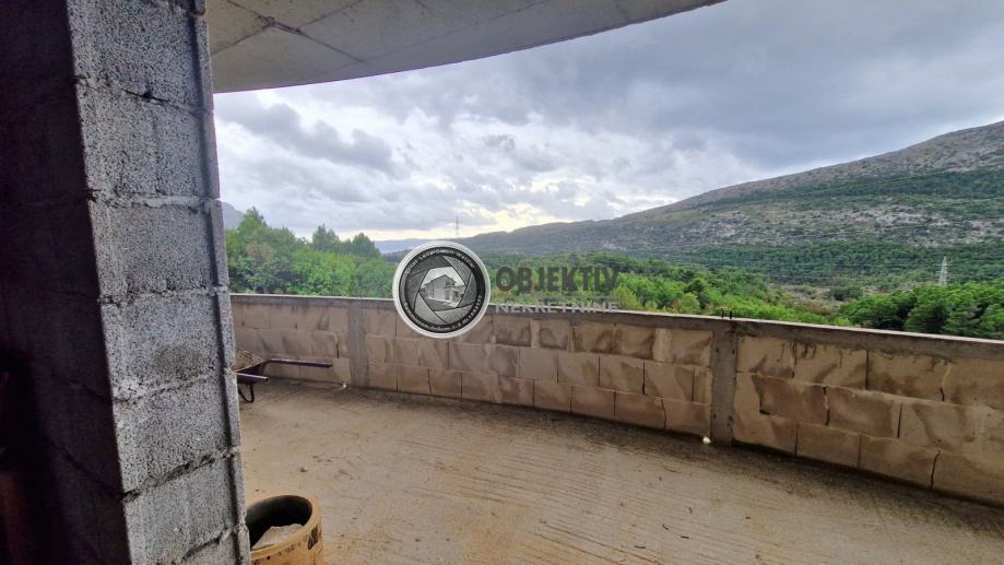 Kuća je zamišljena kao prostrani, dvoetažni stan (prizemlje i kat) s balkonima površine cca 240m2, s kojih se pruža lijep nezaklonjen pogled na netaknutu prirodu koja je okružuje te pogled na more u daljini, dok bi suteren s izlazom u vrt bio prostor za druženje, konoba i sl.