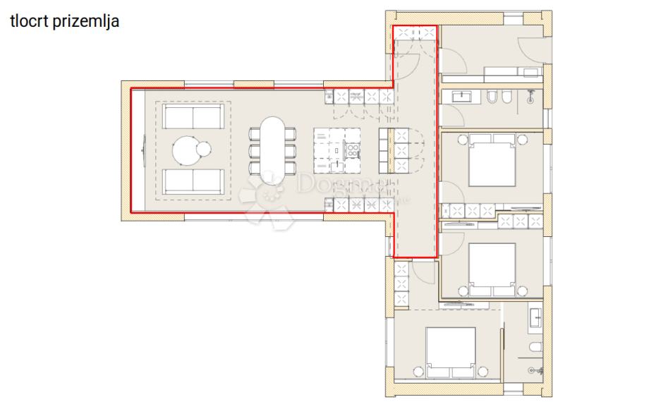 - prostranog dnevnog boravka s kuhinjom i blagovaonicom s izlazom na natkrivenu terasu