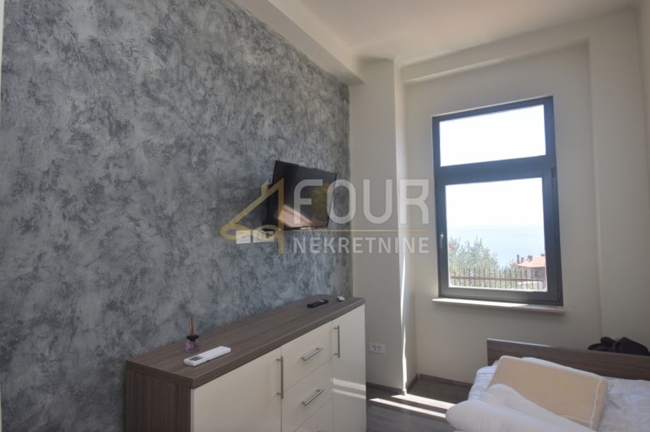 Sastoji se od ulaznog prostora koji služi kao manja kancelarija, tri spavaće sobe od kojih jedna ima vlastitu kupaonicu, kuhinje, male praonice, hodnika, komforne blagovaonice koja ima izlaz na veliku, sunčanu terasu od 50m2 s koje se pruža otvoreni pogled na more.