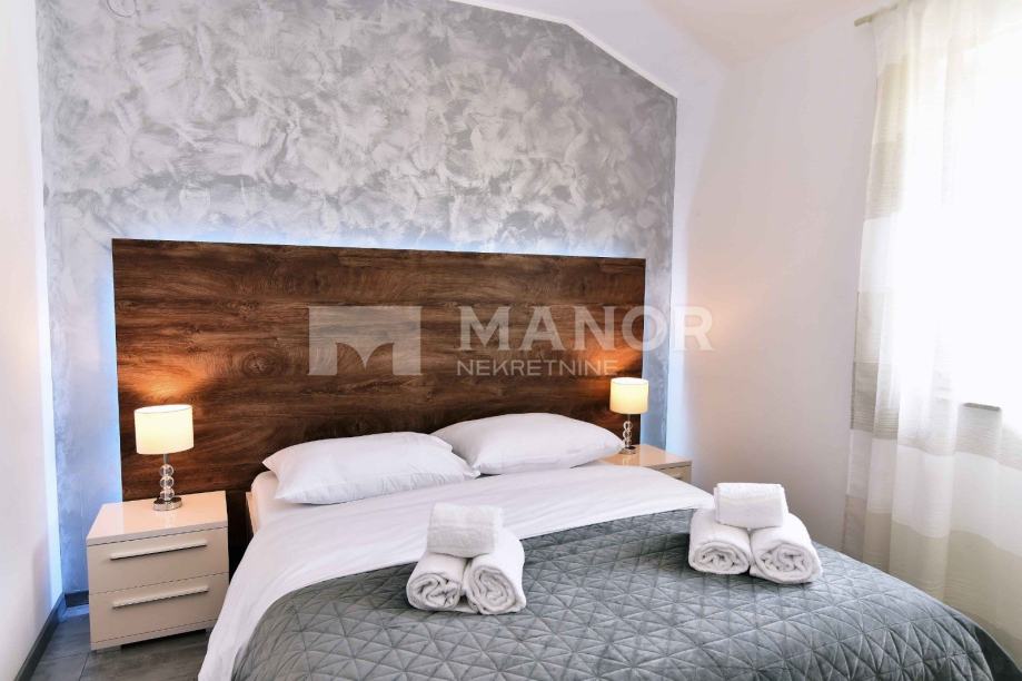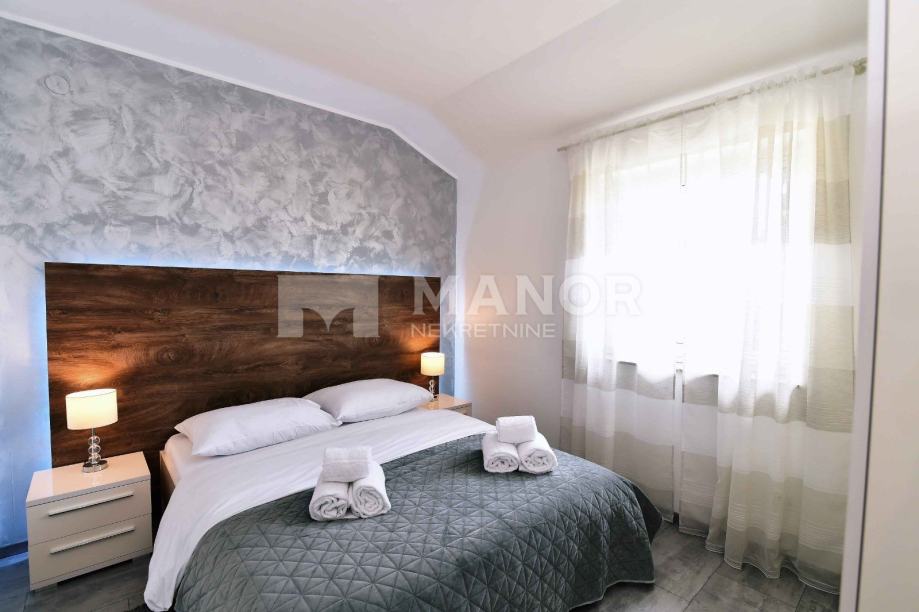 u sklopu okućnice zgrade, a na korištenje ima i zajednički bazen. Stan je kompletno, s ukusom namješten