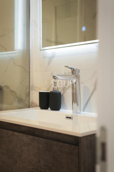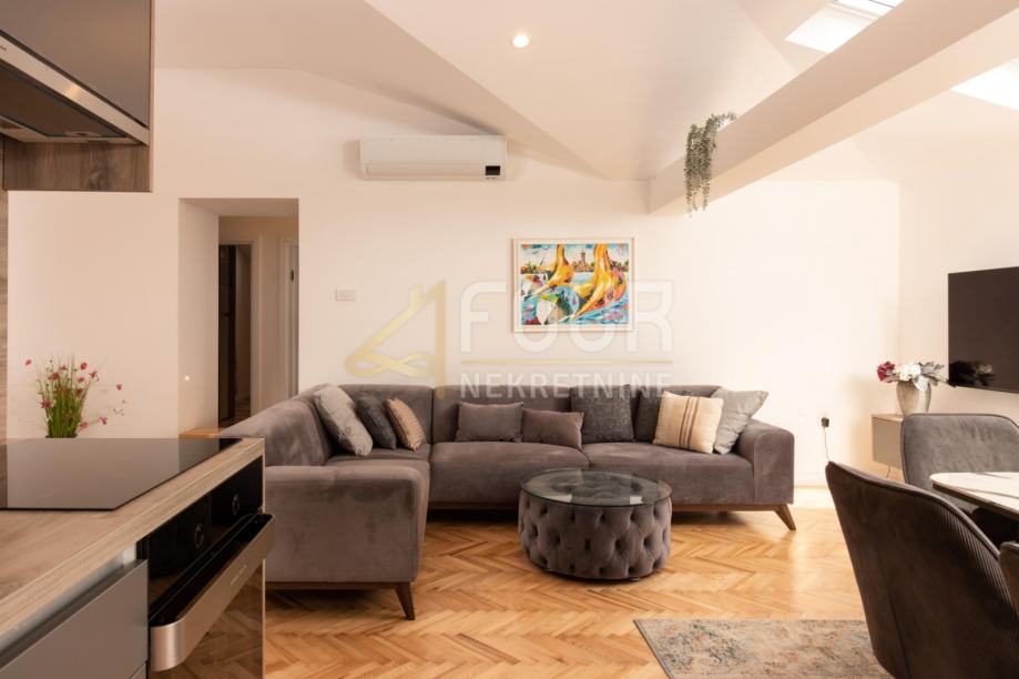 Stan je opremljen klima uređajem, protuprovalnim vratima, video nadzorom i parketom.