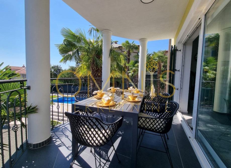 Stanu pripada terasa s pogledom na Kvarner, parkirno mjesto, te bazen na korištenje. U cijenu uključen internet i tv programi.