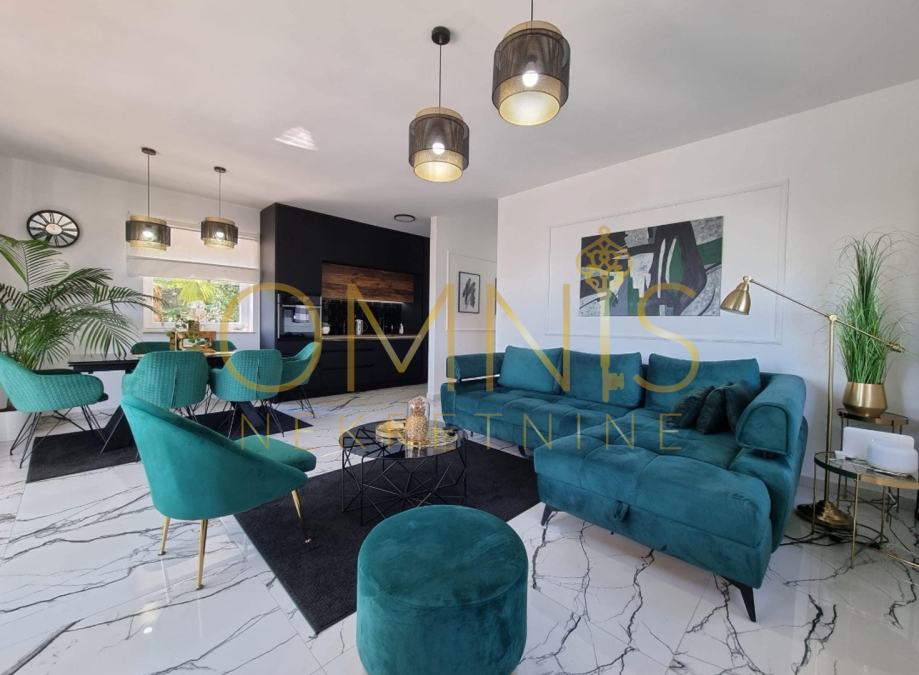 Stan se sastoji od dvije spavaće sobe, openn space dnevnog boravka s kuhinjom i blagavaonicom, kupaonice, wc, hodnika.