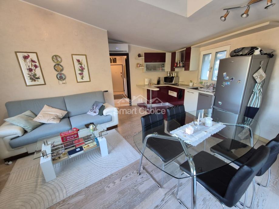 Opatija-samo kod nas!! Prekrasan stan s pogledom na Kvarnerski zaljev. Sastoji se od hodnika, dnevnog boravka s kuhinjom, dvije spavaće sobe, kupaonice, spremišta i terase. U suterenu zgrade pripada mu parking mjesto u garaži i jedno vanjsko parking mjesto. Iz dnevnog boravka se izlazi na prostranu terasu. Sobe imaju francuske balkone. Grijanje je na struju. Stan se prodaje kompletno namješten. Prazno od ljudi i odmah useljivo.