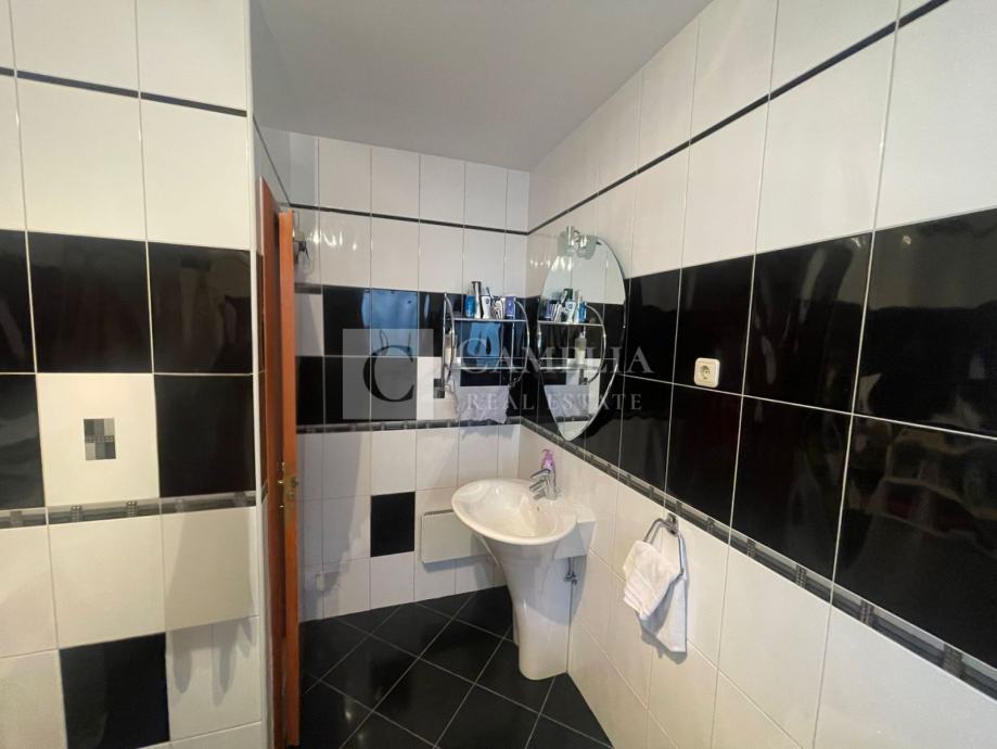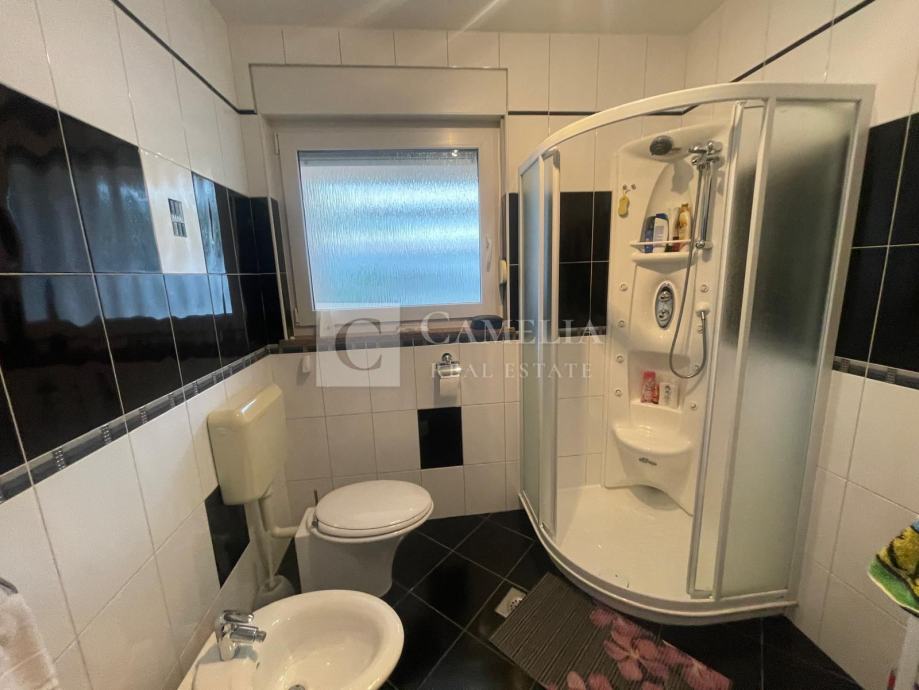 Kupaonica je opremljena velikom tuš kabinom, a tu je i spremište u kojem je smještena perilica rublja, a prostor može poslužiti i za dodatnu pohranu stvari.