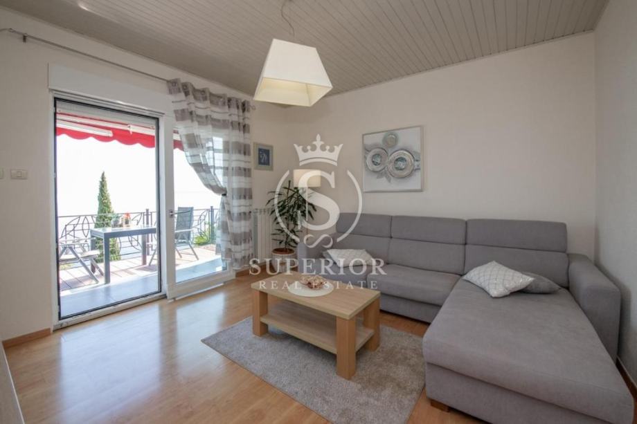 Velika terasa, dva balkona, tri spavaće sobe, tri kupaonice i očaravajući panoramski pogled na Kvarnerski zaljev čine je idealnim izborom za luksuzni turistički najam, drugu rezidenciju ili obiteljski život u srcu Opatije.
