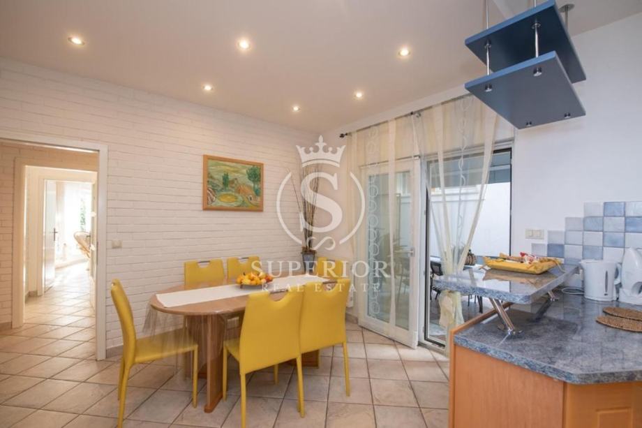 Na ekskluzivnoj i iznimno traženoj lokaciji, drugi red do mora, smjestio se ovaj elegantan i prostran stan površine 140 m² u predivnoj vili s privatnim ulazom. Ova nekretnina odiše šarmom Mediterana i nudi savršenu ravnotežu između privatnosti, atraktivnosti za najam i dugoročne vrijednosti.