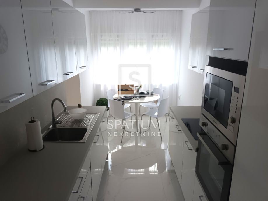 Stan se sastoji od ulaznog hodnika, kuhinje, dvije sobe, dnevnog boravka, i kupaonice. Ima dvije lođe, na jednu se izlazi iz dnevnog boravka a na drugu iz jedne od spavaćih soba. Grijanje je na klima uređaj i električno podno grijanje u kuhinji i kupaonici.